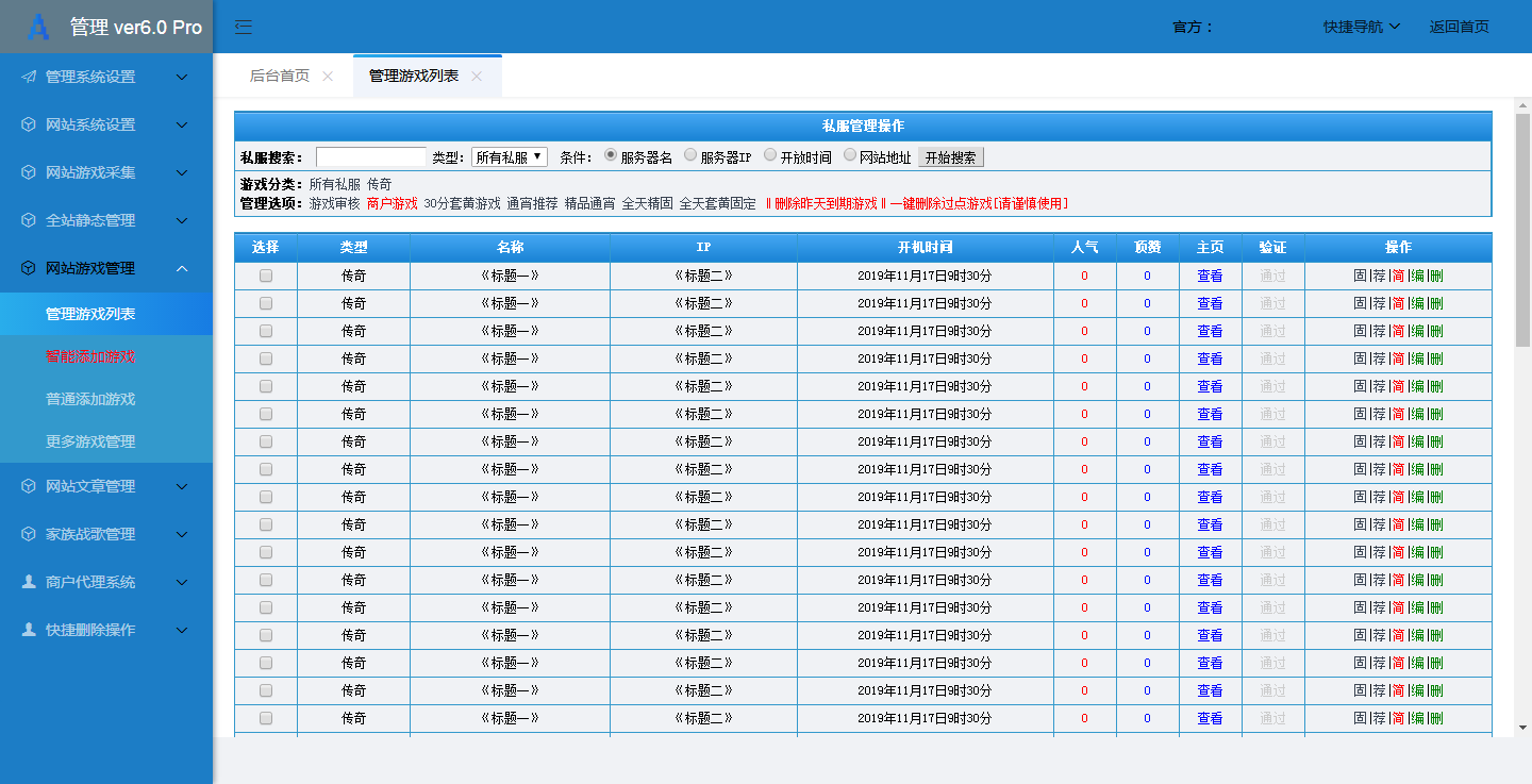 4.支持传奇,神途,传世,魔域,天龙,诛仙,征途,魔兽,完美,冒险岛一系列发布站
